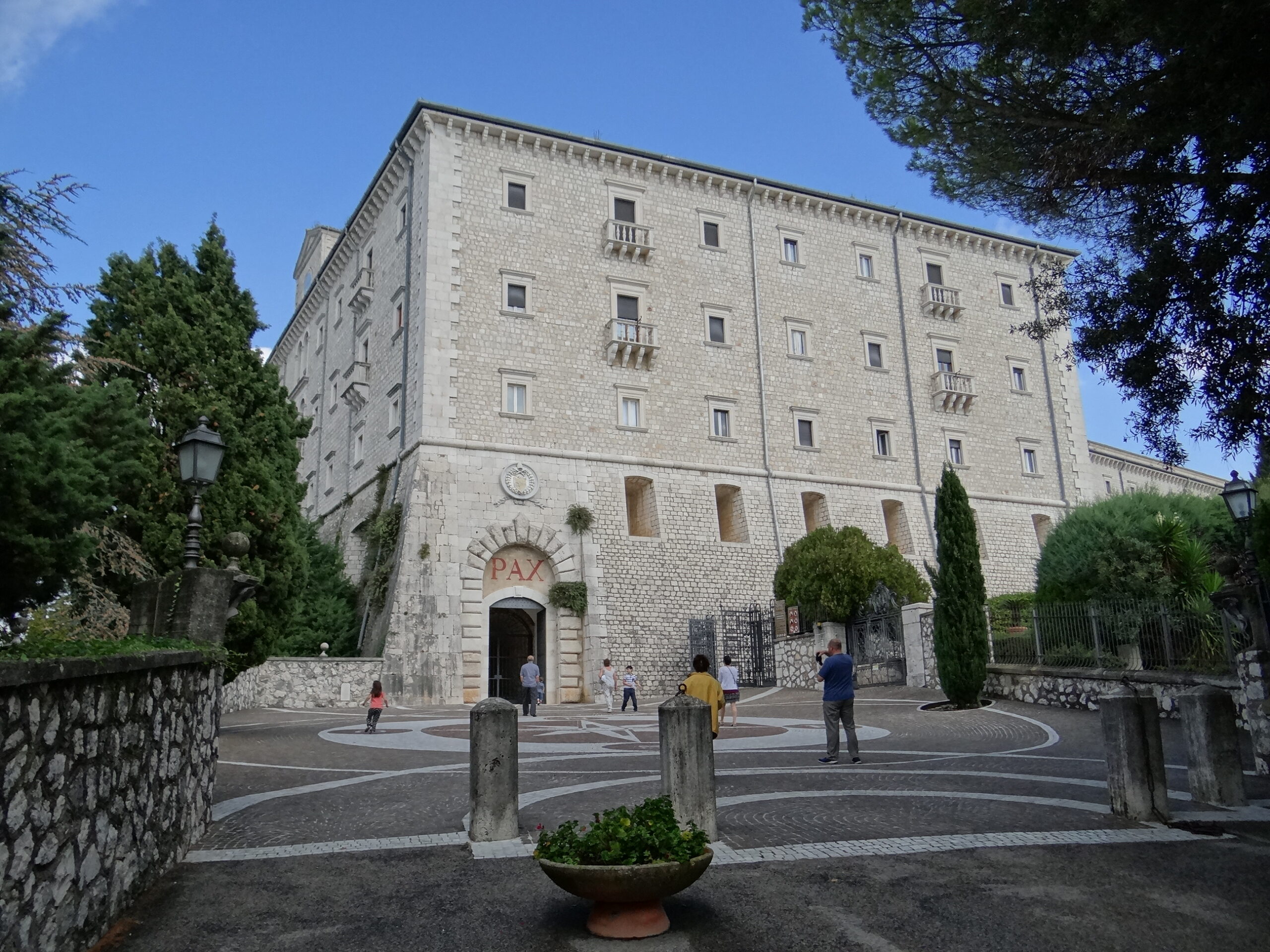 Visiting the Abbey of Monte Cassino founded by Saint Benedict around 529 AD. The abbey suffered numerous destructions, most notably in World War II, which resulted in the complete destruction of the monastic complex. The structure standing today is a reconstruction built after 1944, using the original plans.