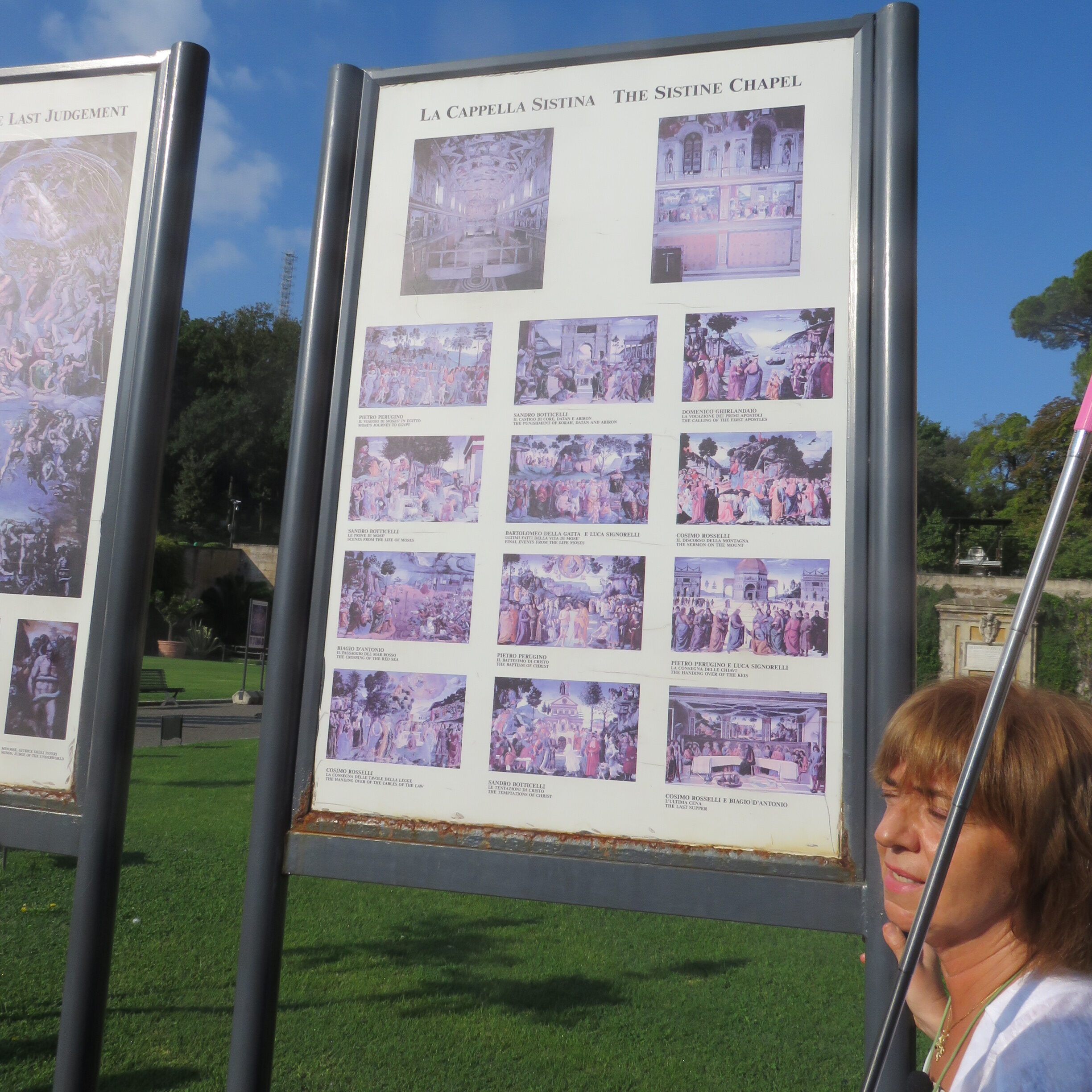First stop at Vatican City was the Sistine Chapel. No pictures or guides allowed inside, so here’s our guide giving us some info outside the Sistine Chapel on the paintings inside using displays that are placed outside the entrance.