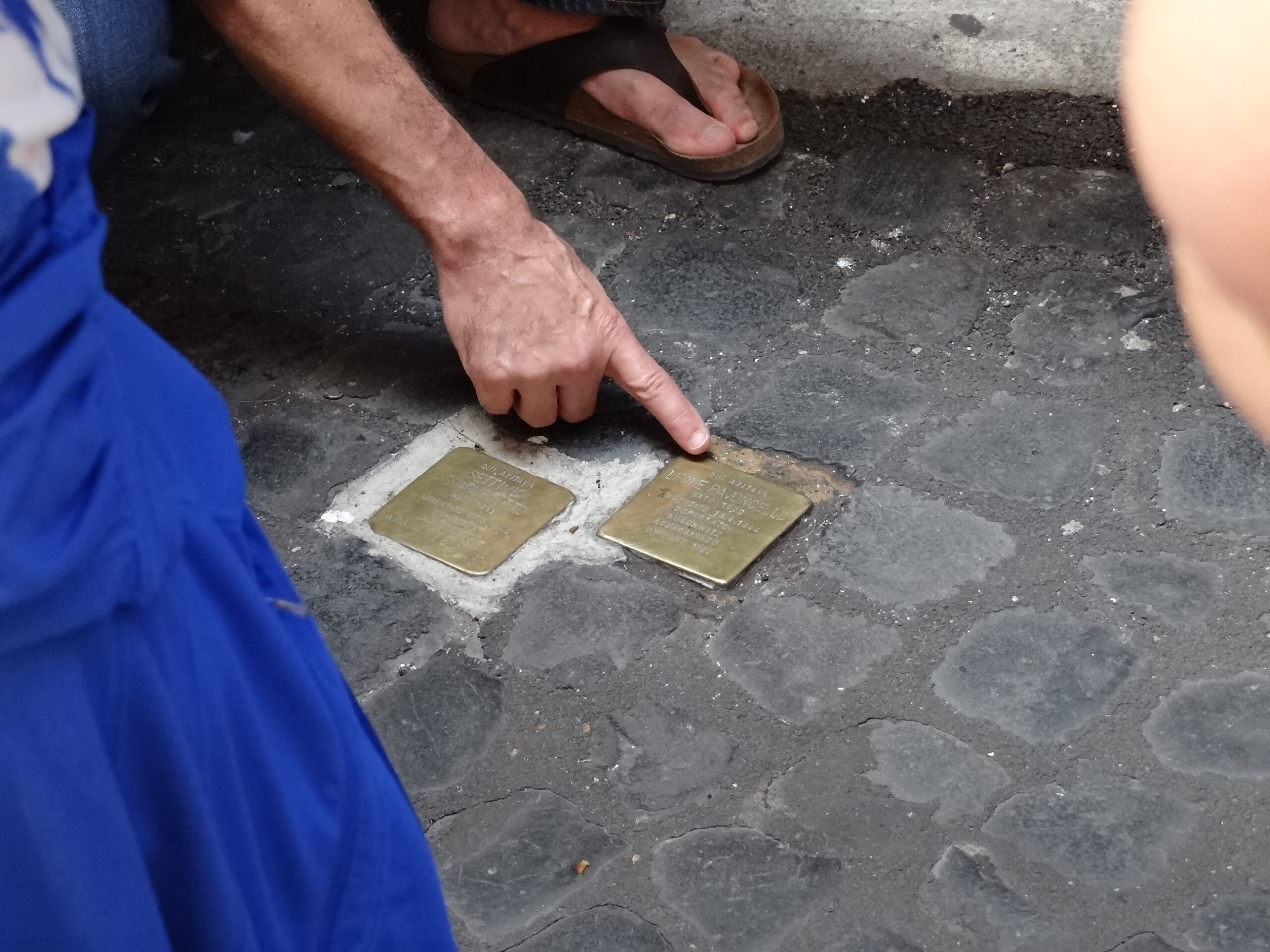 Next we went for a walk through what’s called the Jewish Ghetto or Jewish Quarter. It’s an area where Rome’s Jewish population was forced into overcrowded conditions and their rights were limited for over 300 years until the walls were torn down in 1870. Embedded in the pavement in places are these brass plaques that are engraved with a victim’s name, dates of birth and death, and deportation details. They are placed in front of the last known address where the victim lived before being rounded up and sent to a Nazi extermination camp.