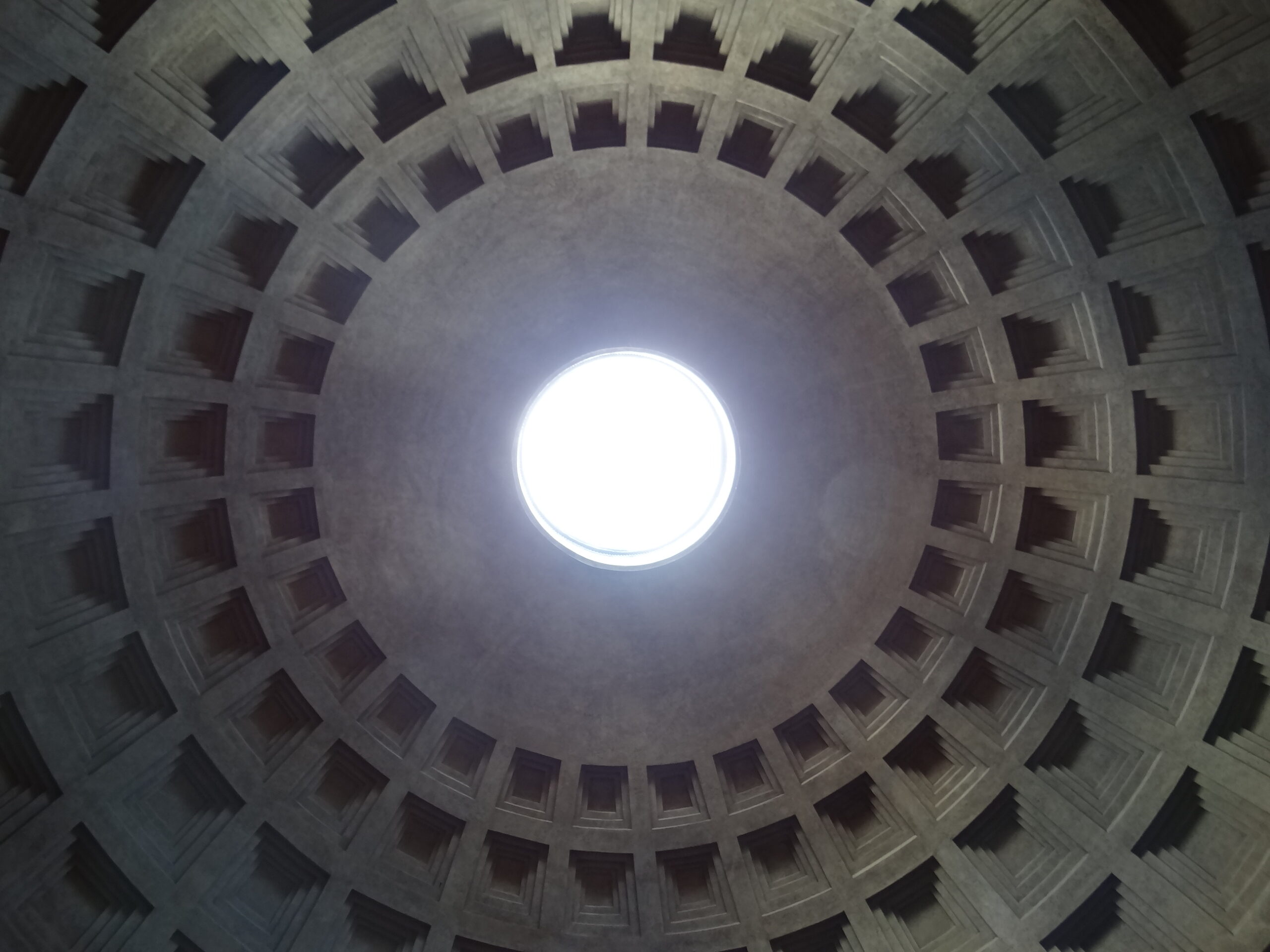 Shot of the hole in the roof. Nearly two millennia after its construction, the Pantheon’s dome remains the world’s largest unreinforced concrete dome with a diameter spanning 142 ft.