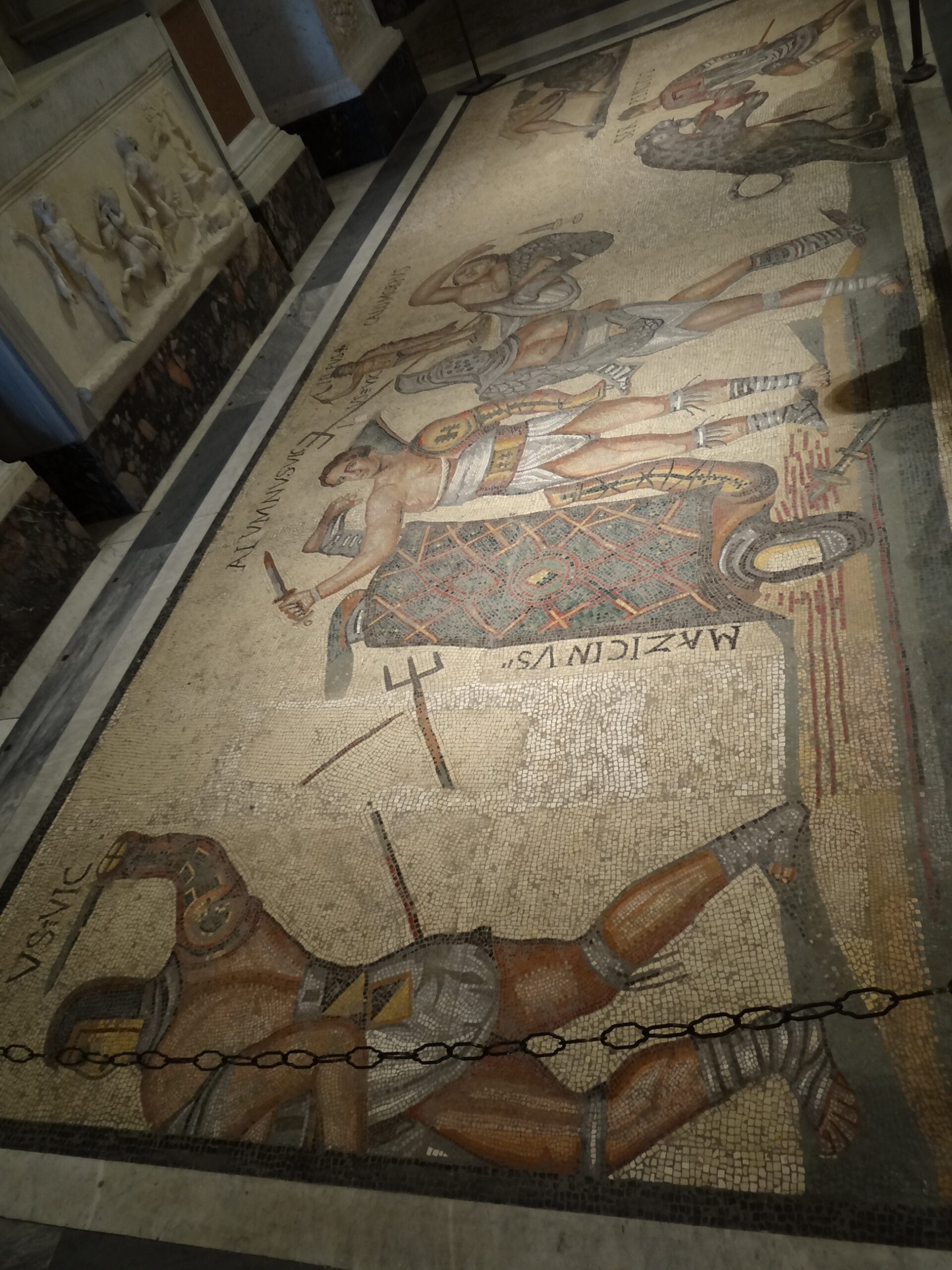 A floor mosaic in the Borghese Gallery.