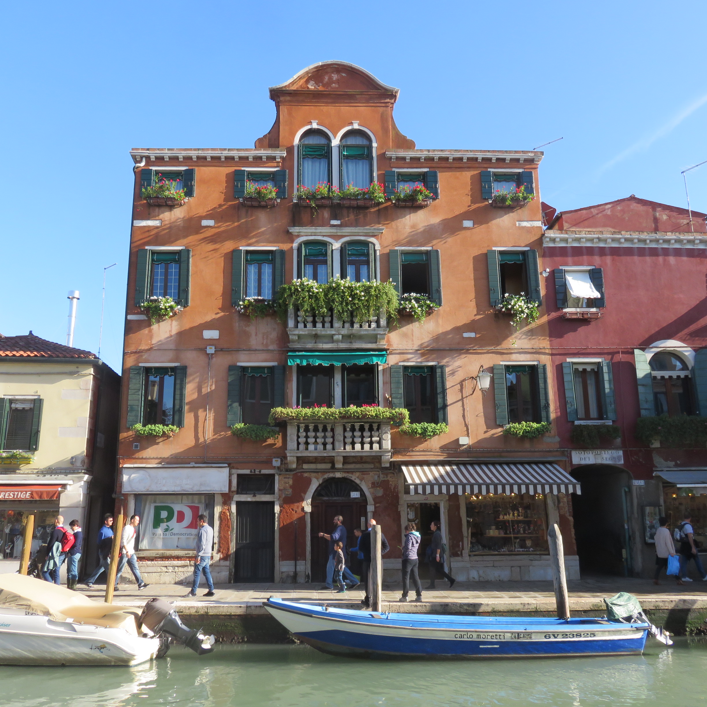 After touring St Mark’s Basilica we took a water taxi over to the island of Murano. Picture of a building on one of its canals.