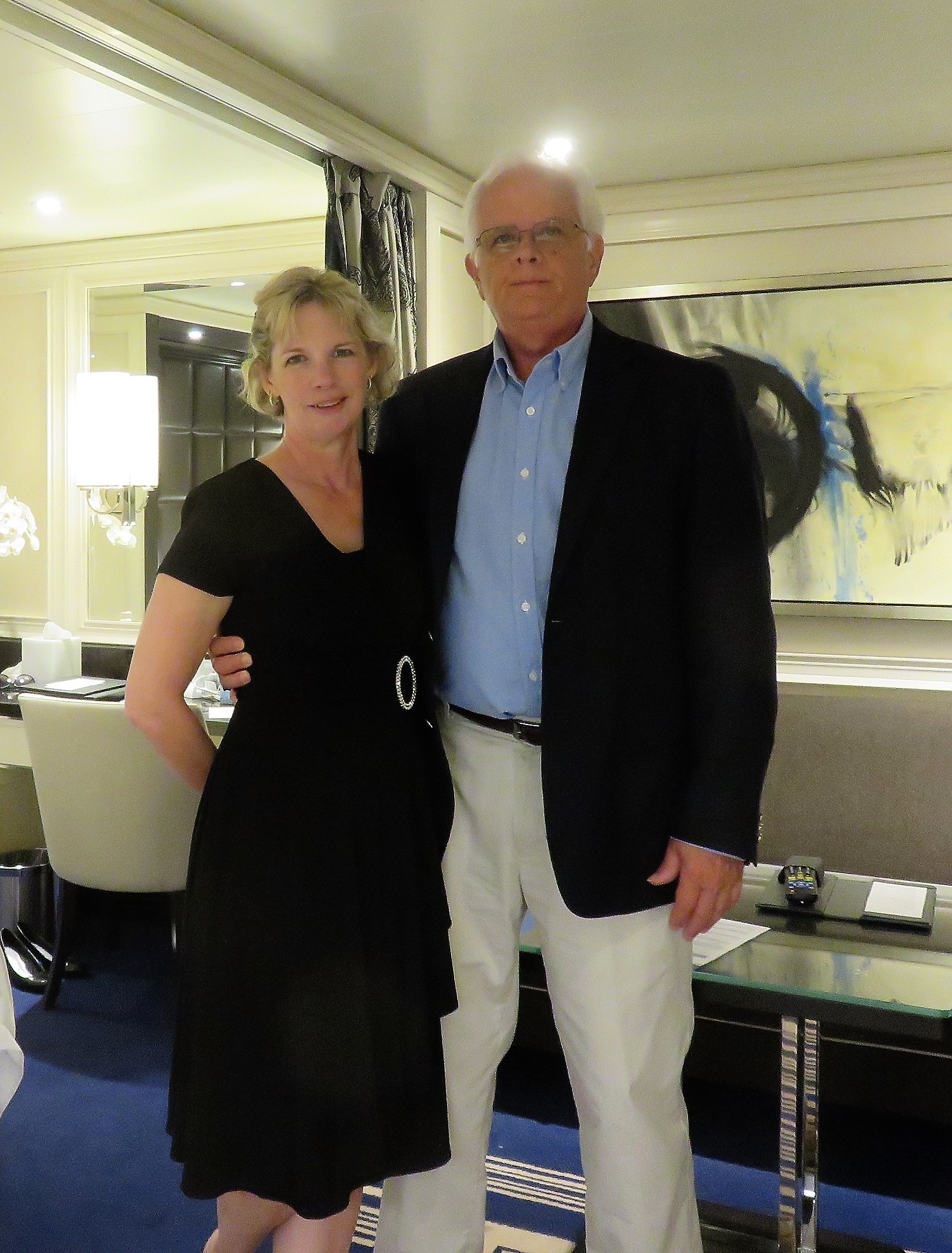 After a hard day of touring the ship, on the way to dinner in our after 6 attire.