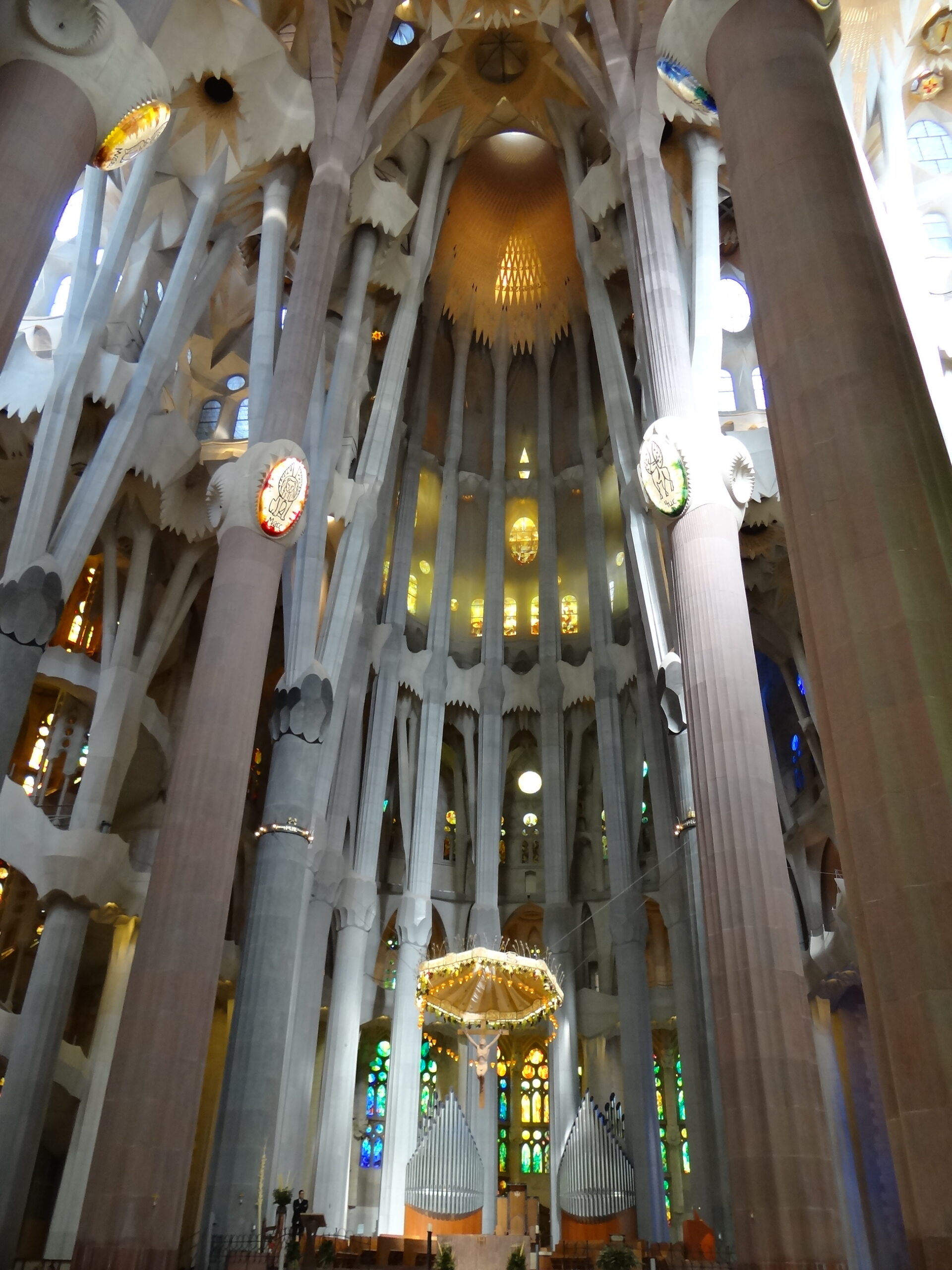 Altar area of the Sagrada Familia with some of the pipes for the organ.