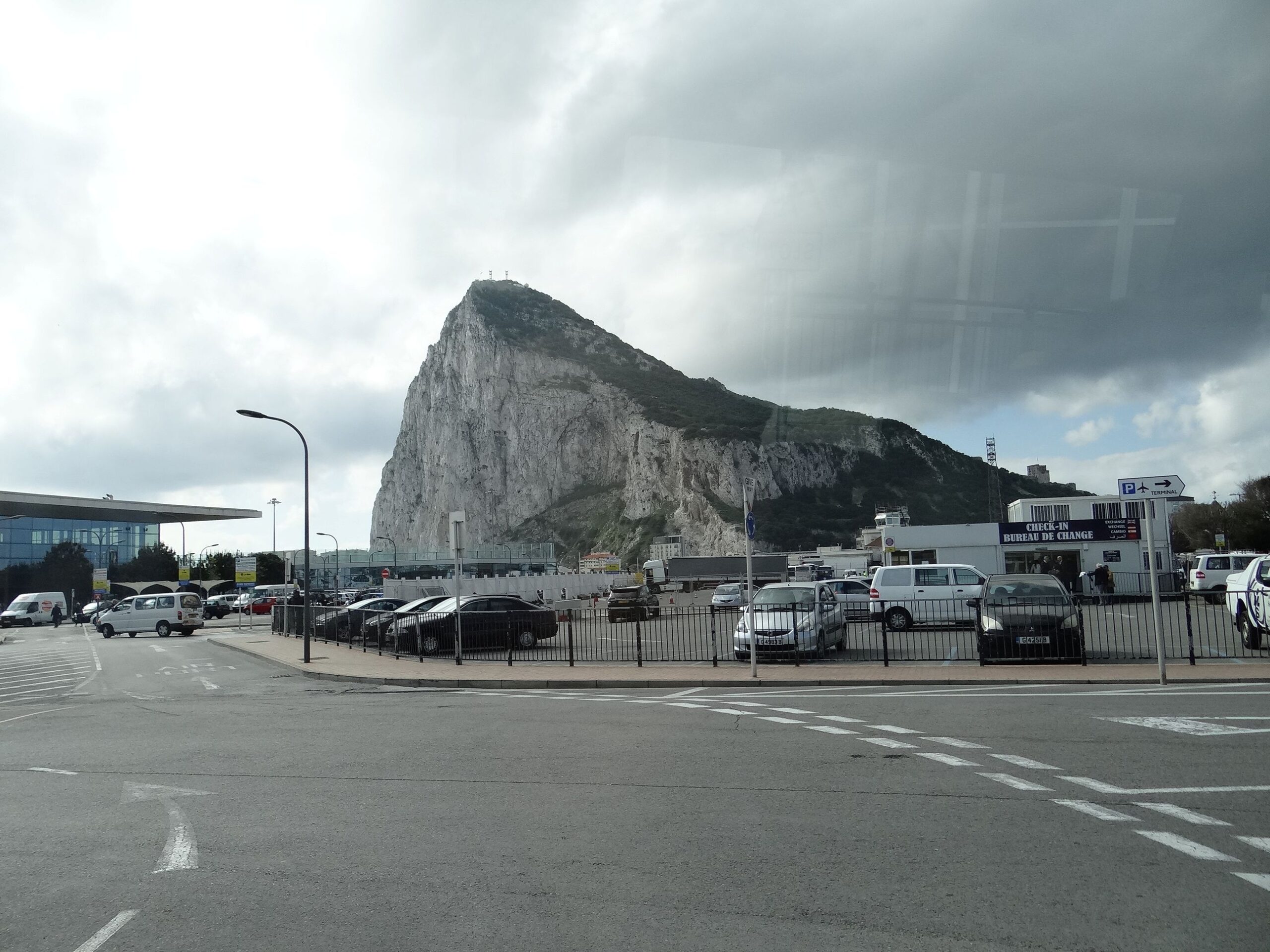 Here we are in Gabraltar driving though the town area which includes driving across the one and only airport’s runway, so they have to close down the road when planes are landing or taking off.