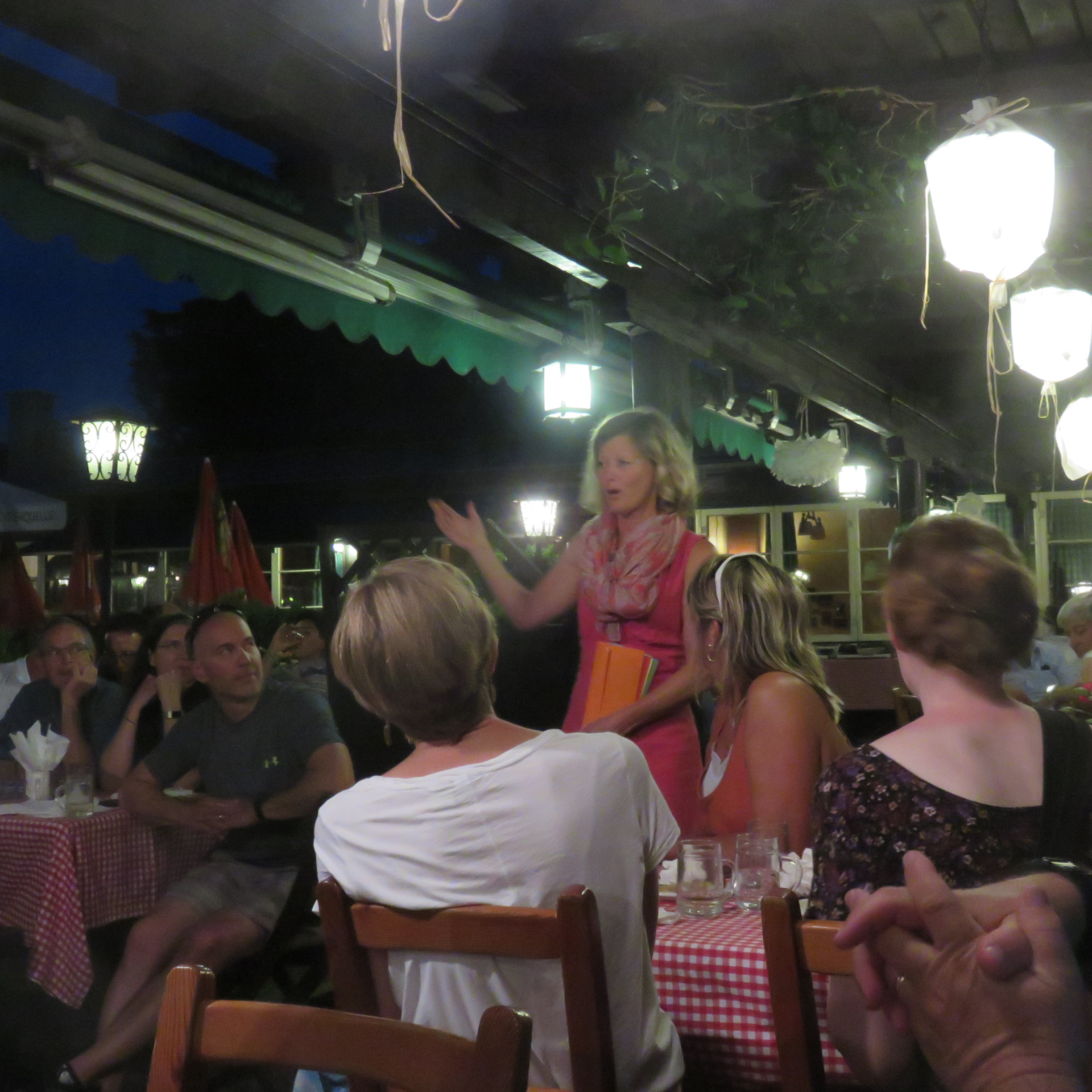 Last night of the tour we got together for dinner and drinks (tour guide standing in the middle). Couple of the ladies on the tour had more than enough of the free drinks and had to be chastised (in German) by the train conductor on the ride back to the hotel for their raucous behavior. Asked our tour guide what he said to them and she preferred to not say.