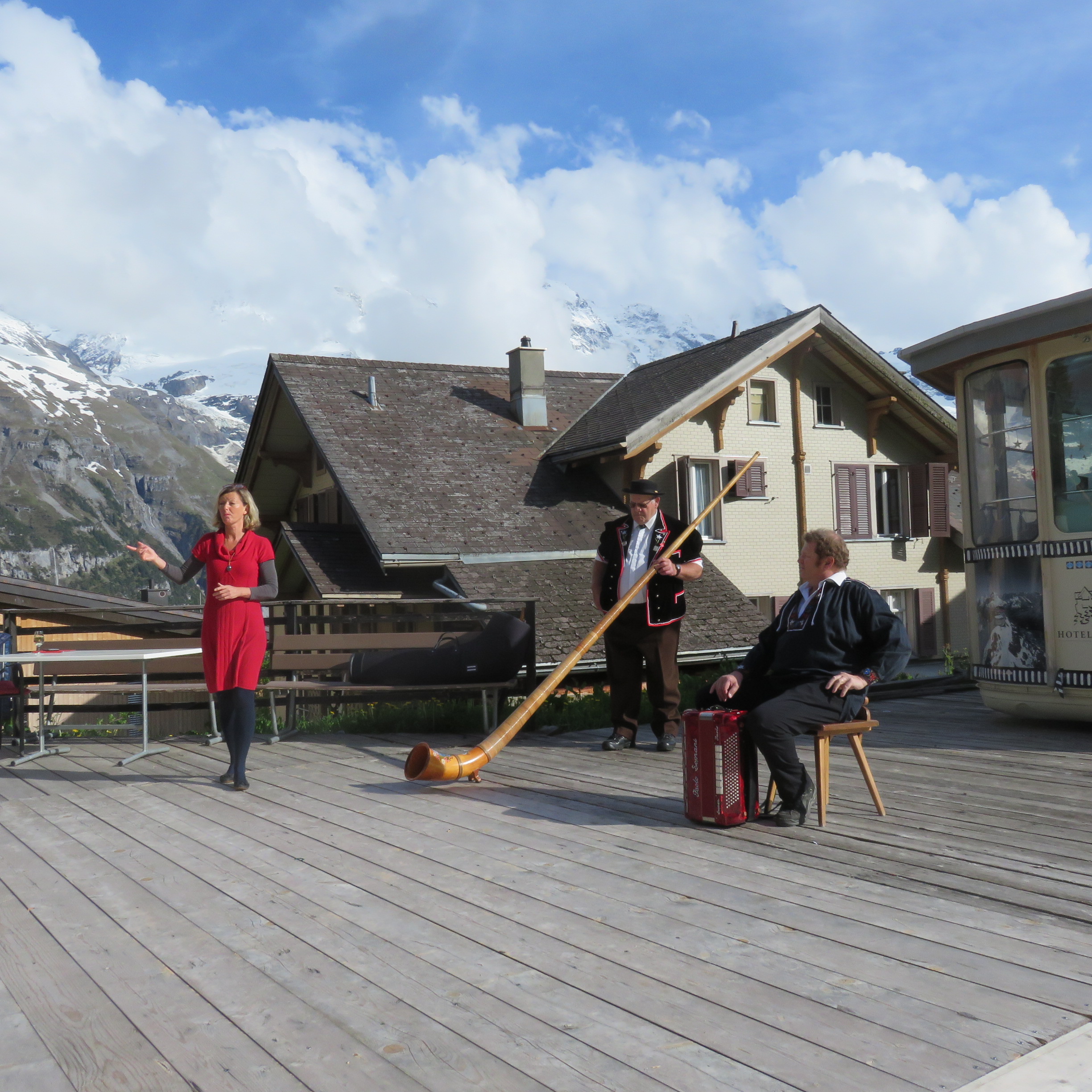Later that day our tour guide arranged to have some guy demonstrate playing the alphorn. Takes a lot of air to play that thing.