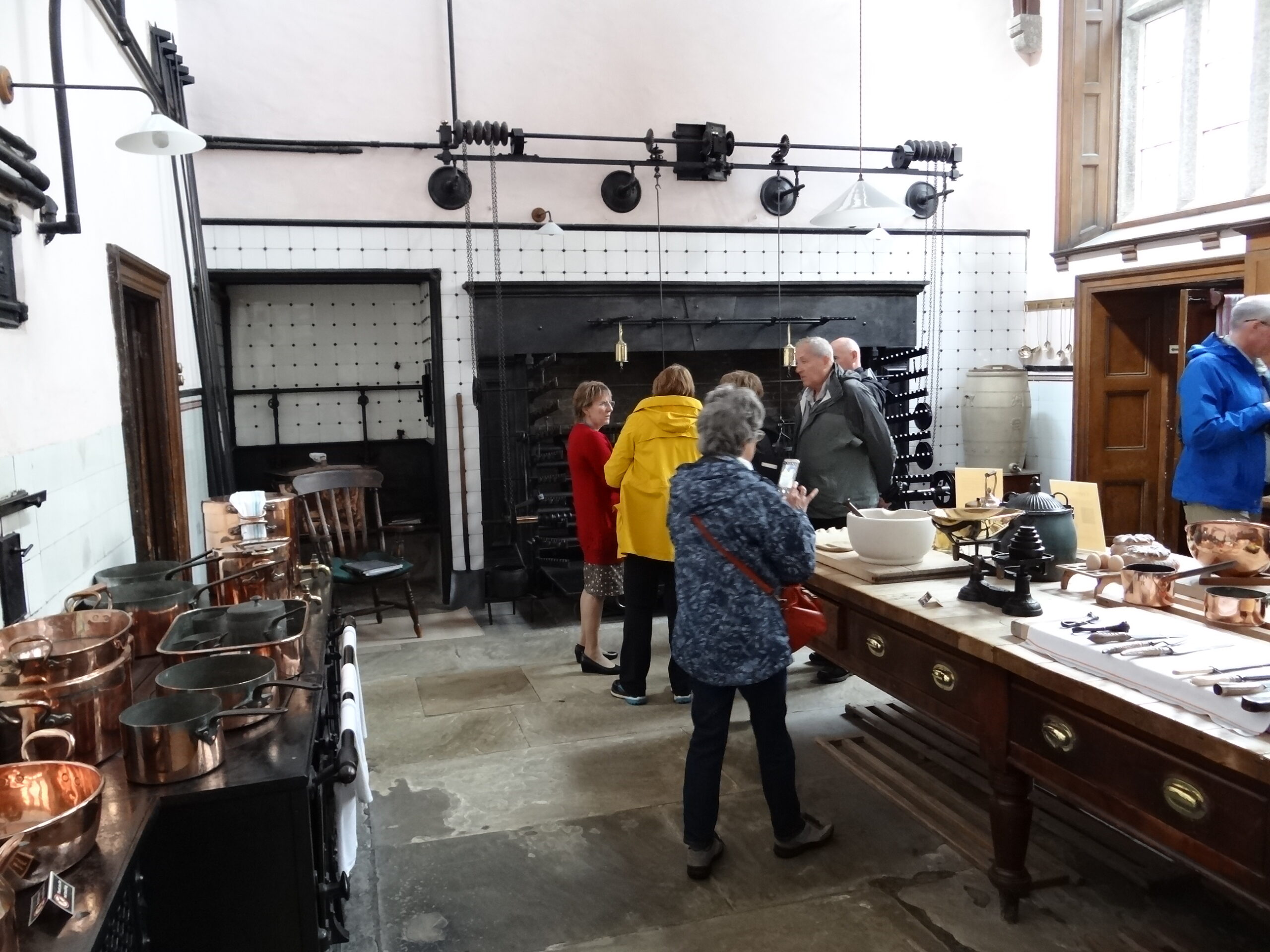 Very impressive kitchen with a pretty elaborate system of wheels and pulleys that turned the meat spits.