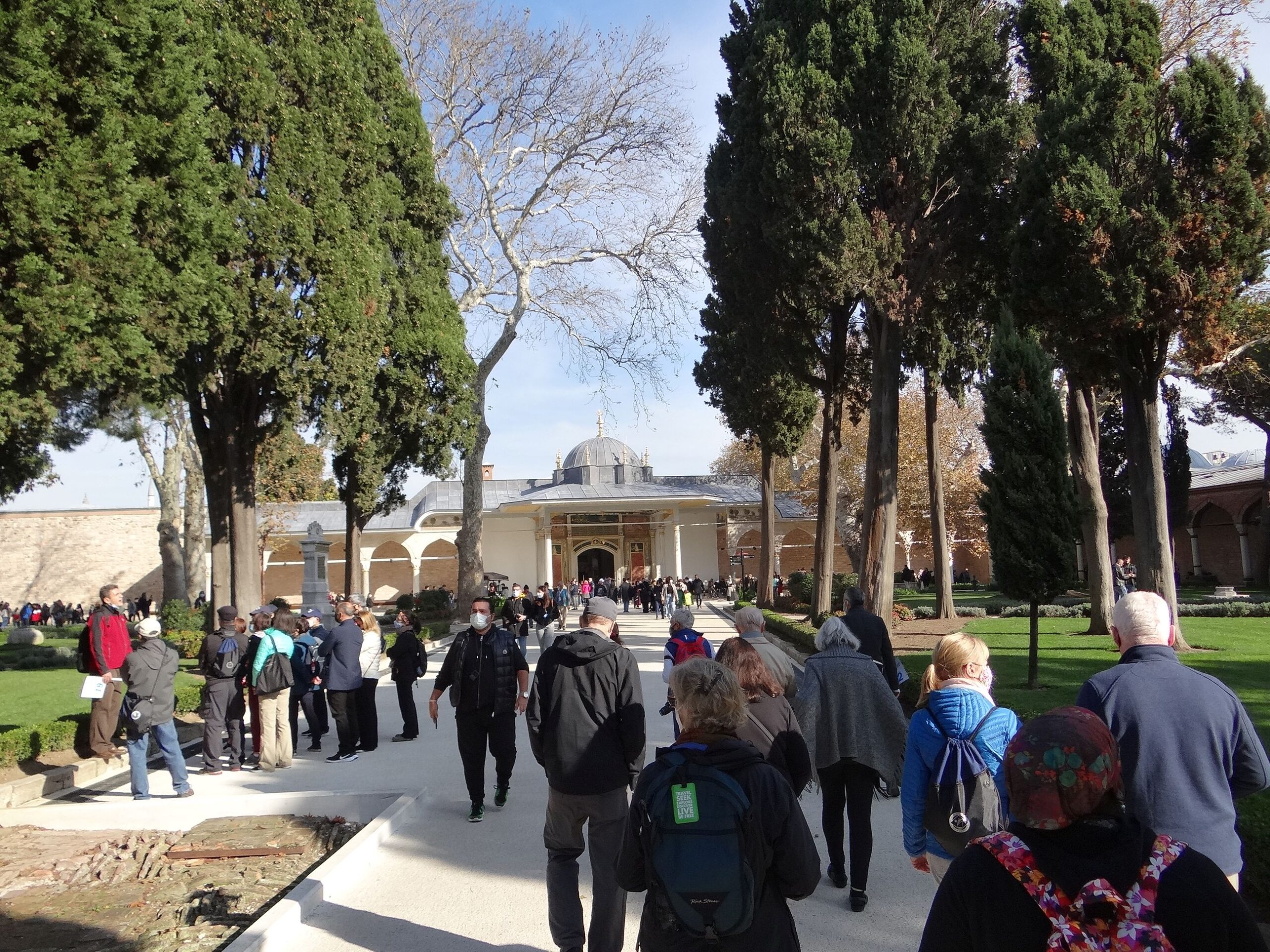 Next stop in Istanbul was Topaki Palace. From the 1460s to the completion of Dolmabahçe Palace in 1856, it served as the administrative center of the Ottoman Empire, and was the main residence of its sultans. The palace complex consists of four main courtyards and many smaller buildings. Female members of the Sultan’s family lived in the harem, and leading state officials, including the Grand Vizier, held meetings in the Imperial Council building.