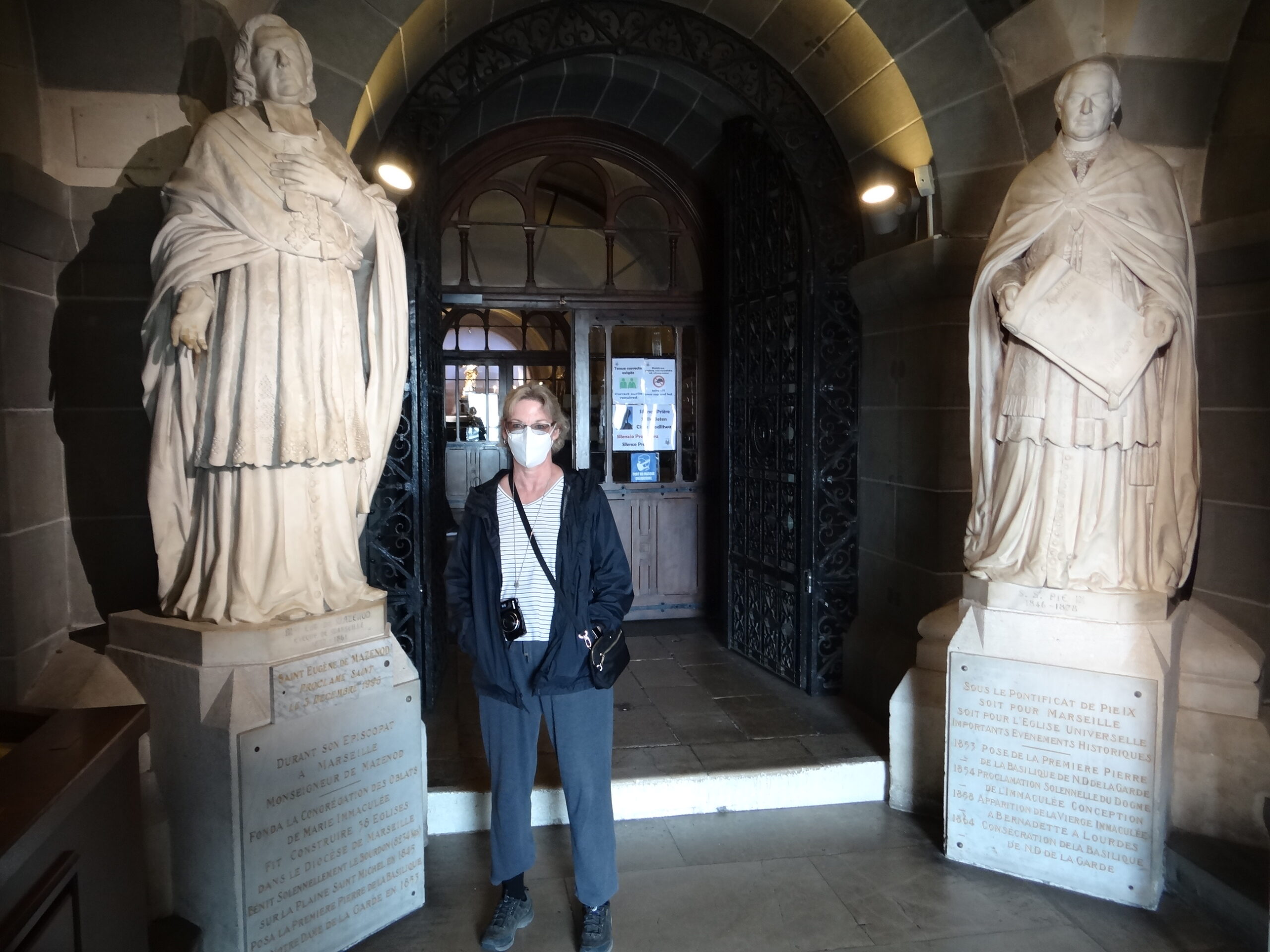 Glenda at the entrance to the crypt with Bishop Eugène de Mazenod on her right and Pope Pius IX on her left.