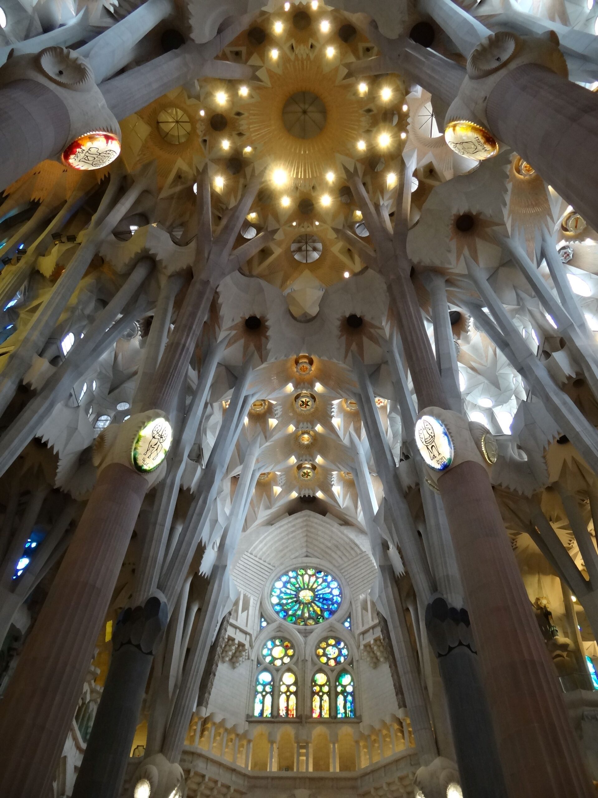 Interior shot of Sagrada Familia looking away from the altar.