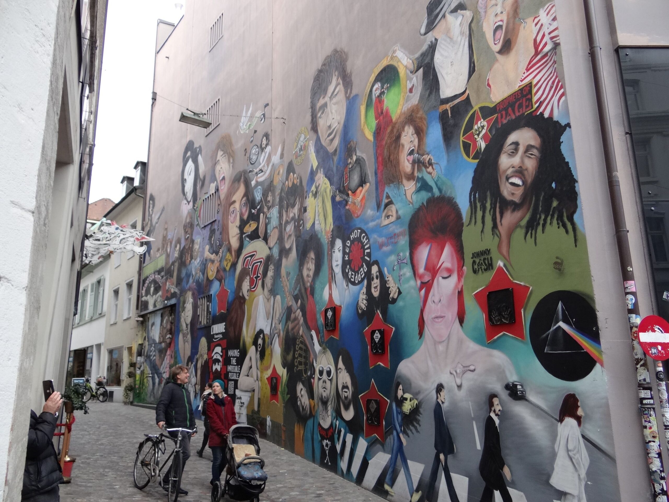 The “House of Rock” mural located in the Gerbergässlein alley in Basel.