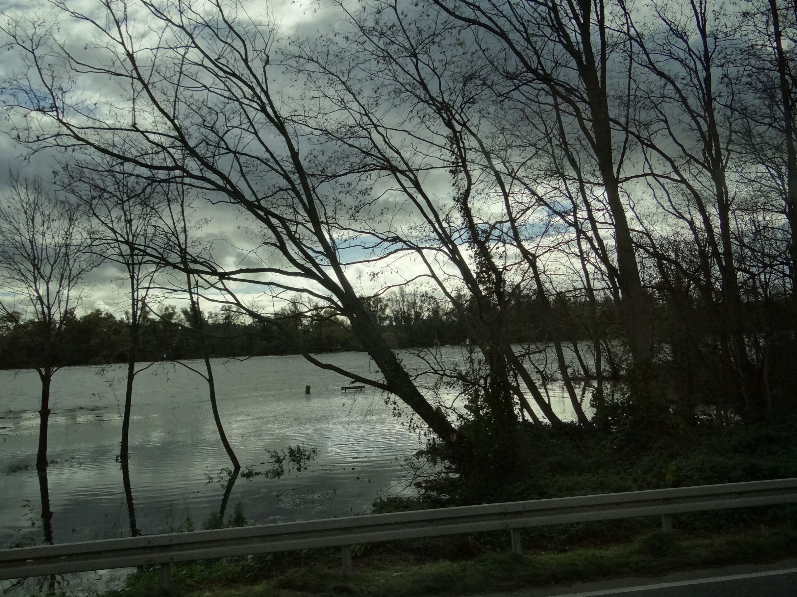 Along the way we get a good look at how high the water is. In this picture you can see a trash can and a bench that used to be on the river’s edge.