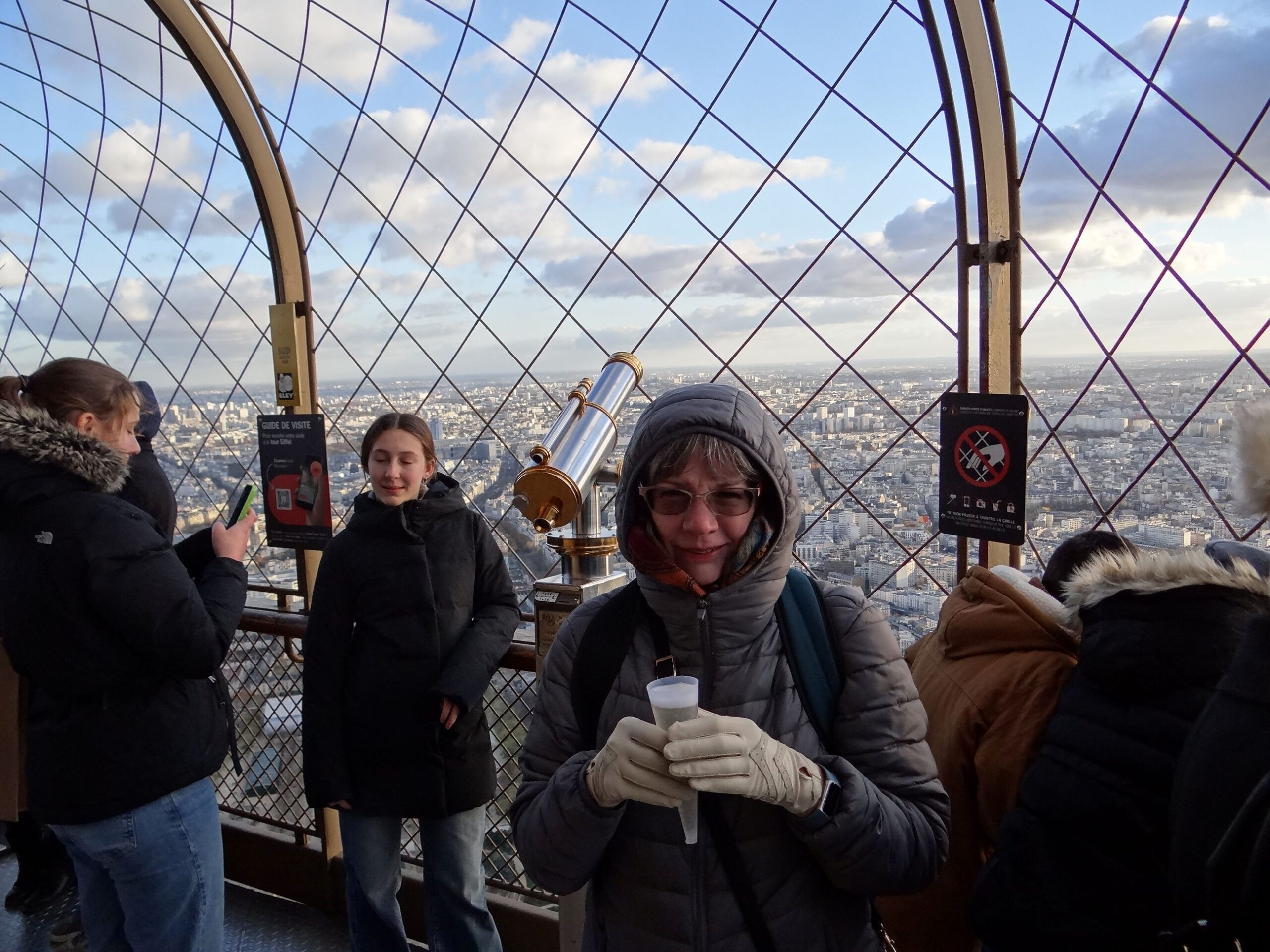 This was our second time at the top of the Eiffel Tower and we carried on the tradition of having a glass of champagne from the champagne bar at the top, even though we were freezing.