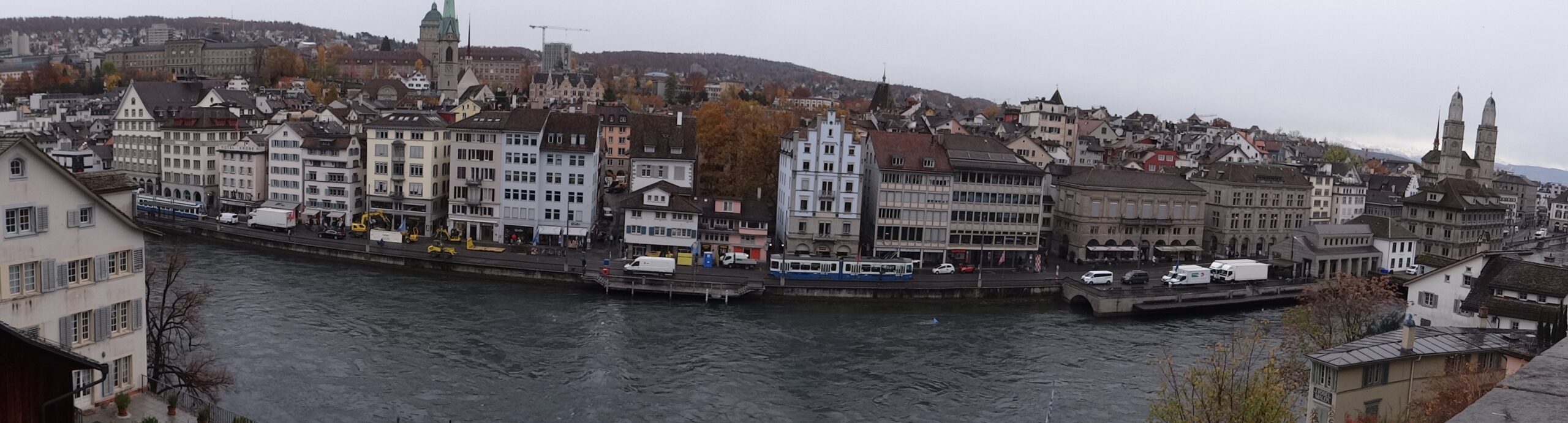 Panaramic view of Old Town Zurich on the Limmat River.
