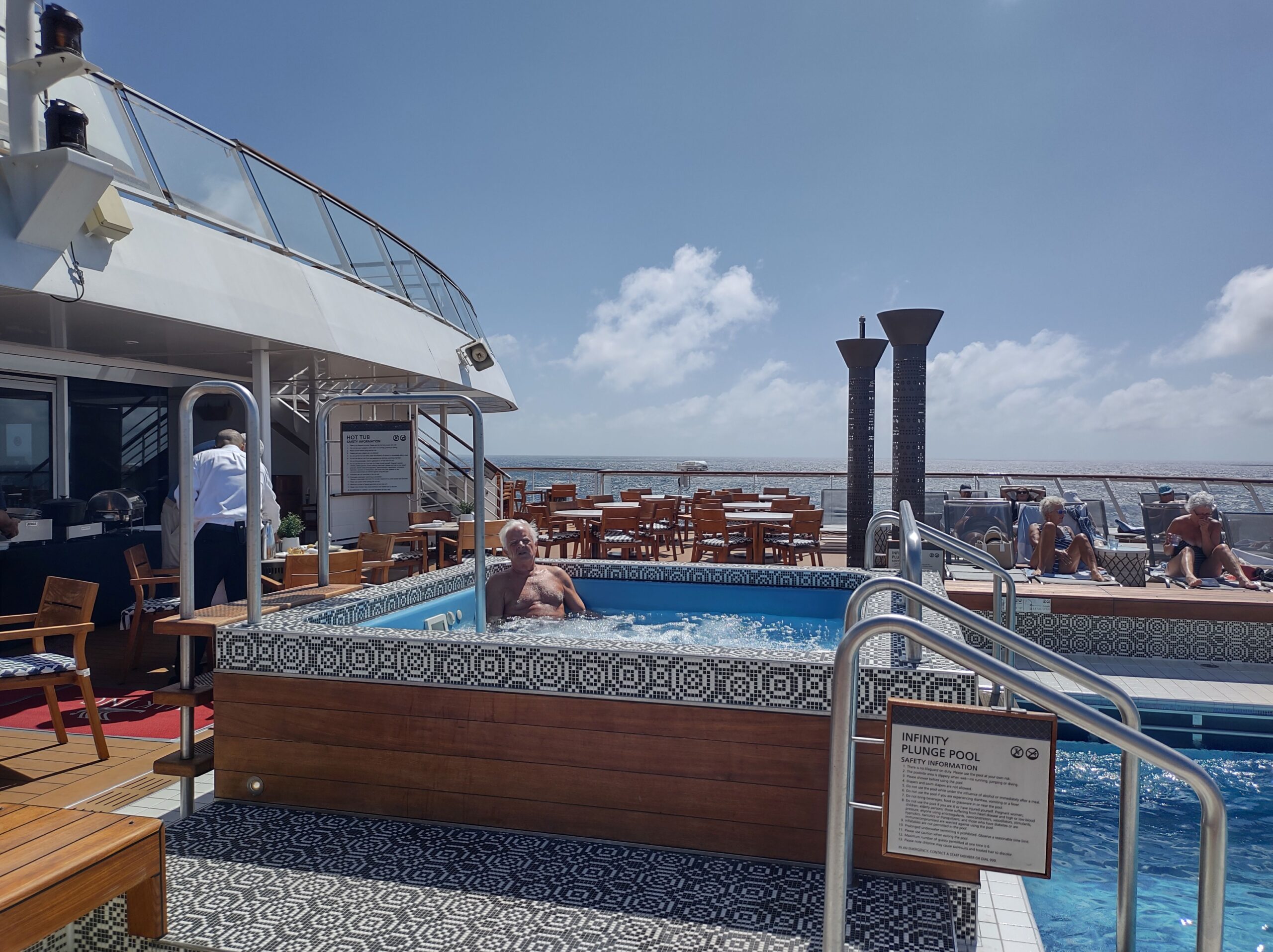 Next stop is San Diego, which means 6 days at sea. This and the next few pictures are us taking advantage of the at sea time. Stan in one of the ship’s hot tubs…