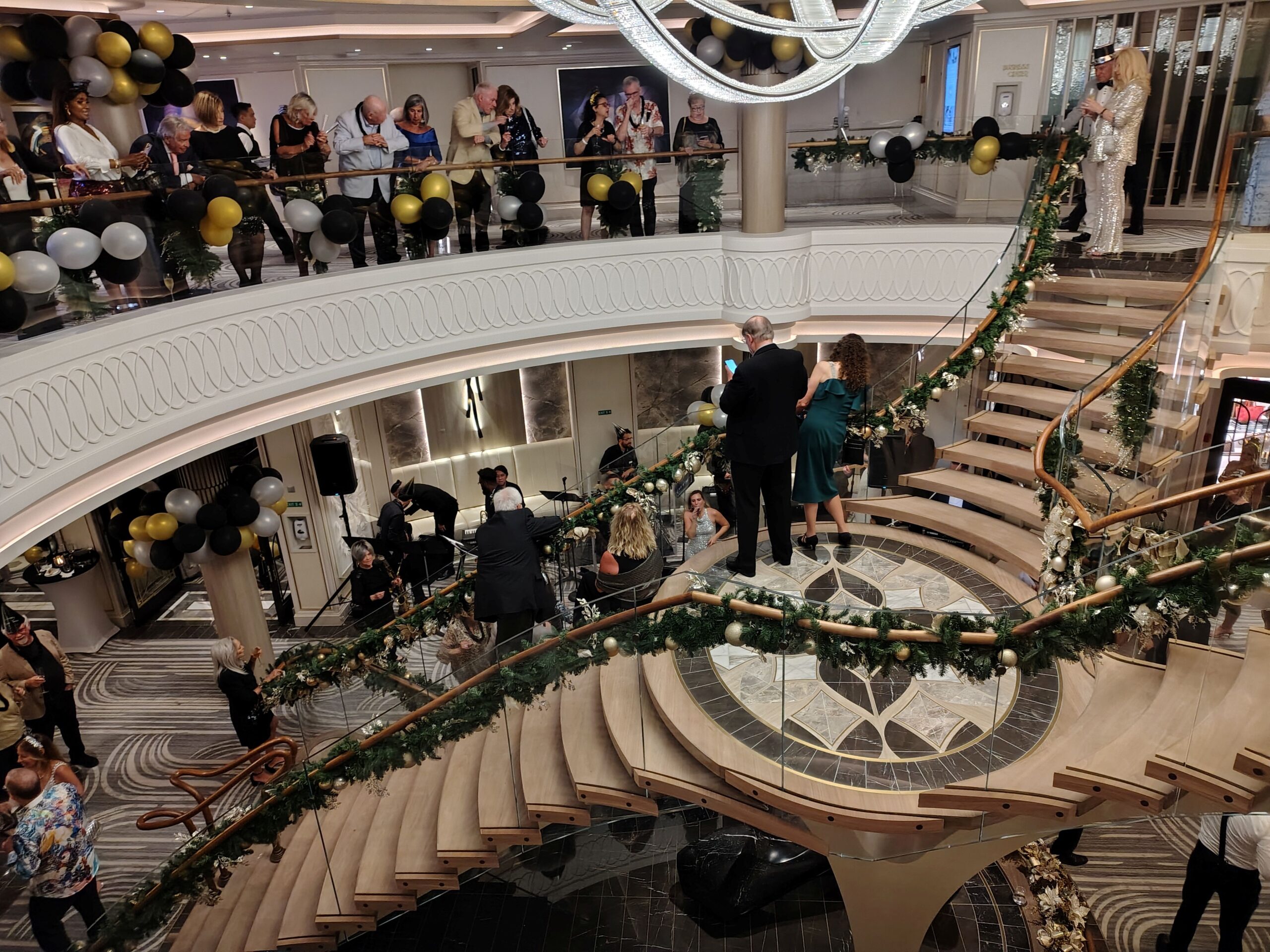 New Year’s celebration on the ship that night. There’s a short video of the celebration under the Videos menu item at the top of the page, or you can go there now (opens in a new tab): 2025-26 Caribbean Cruise Videos.