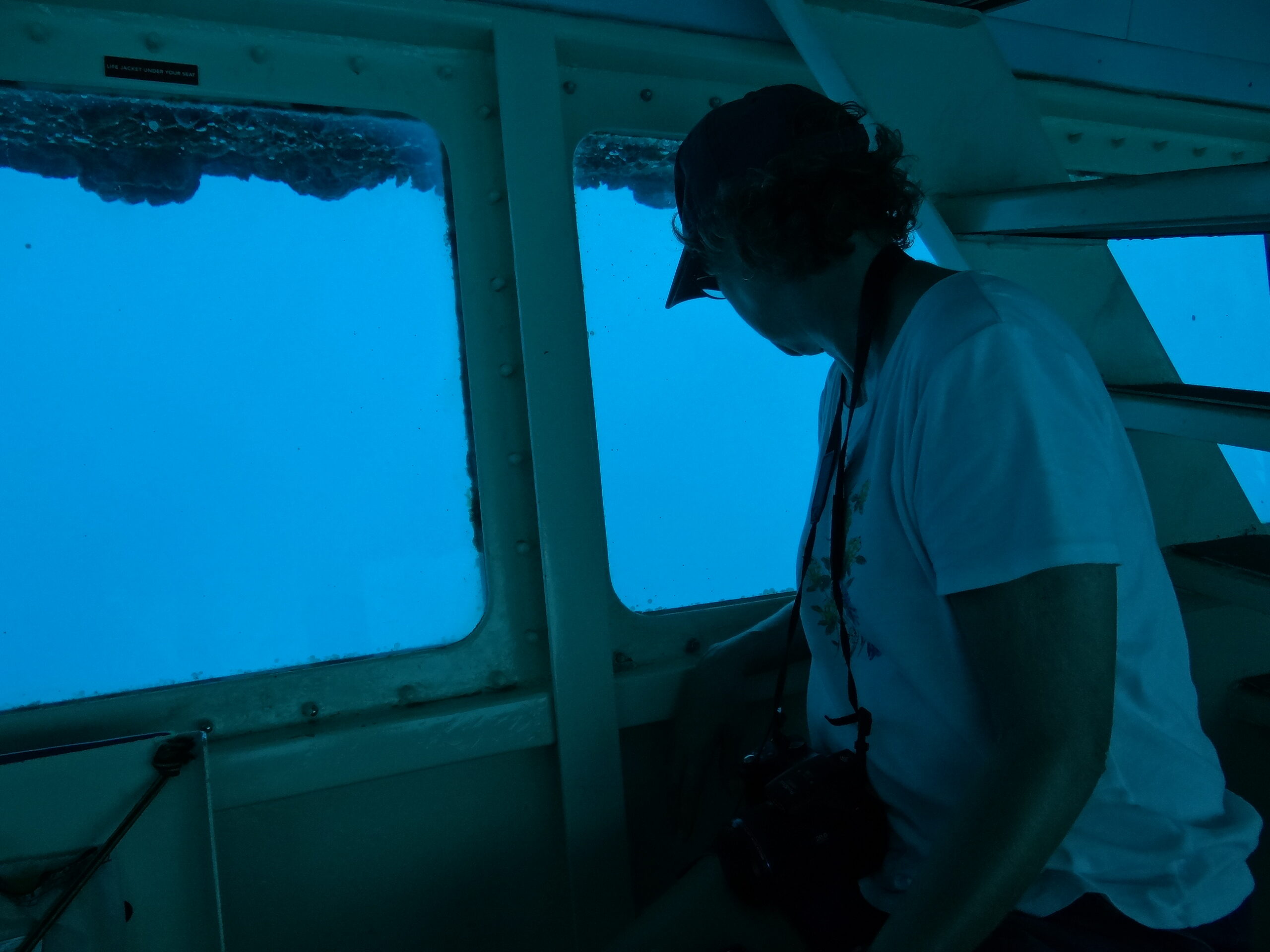 And here’s Glenda looking out the window of another “submarine”. Much like the one the day before the top part stays above the water.