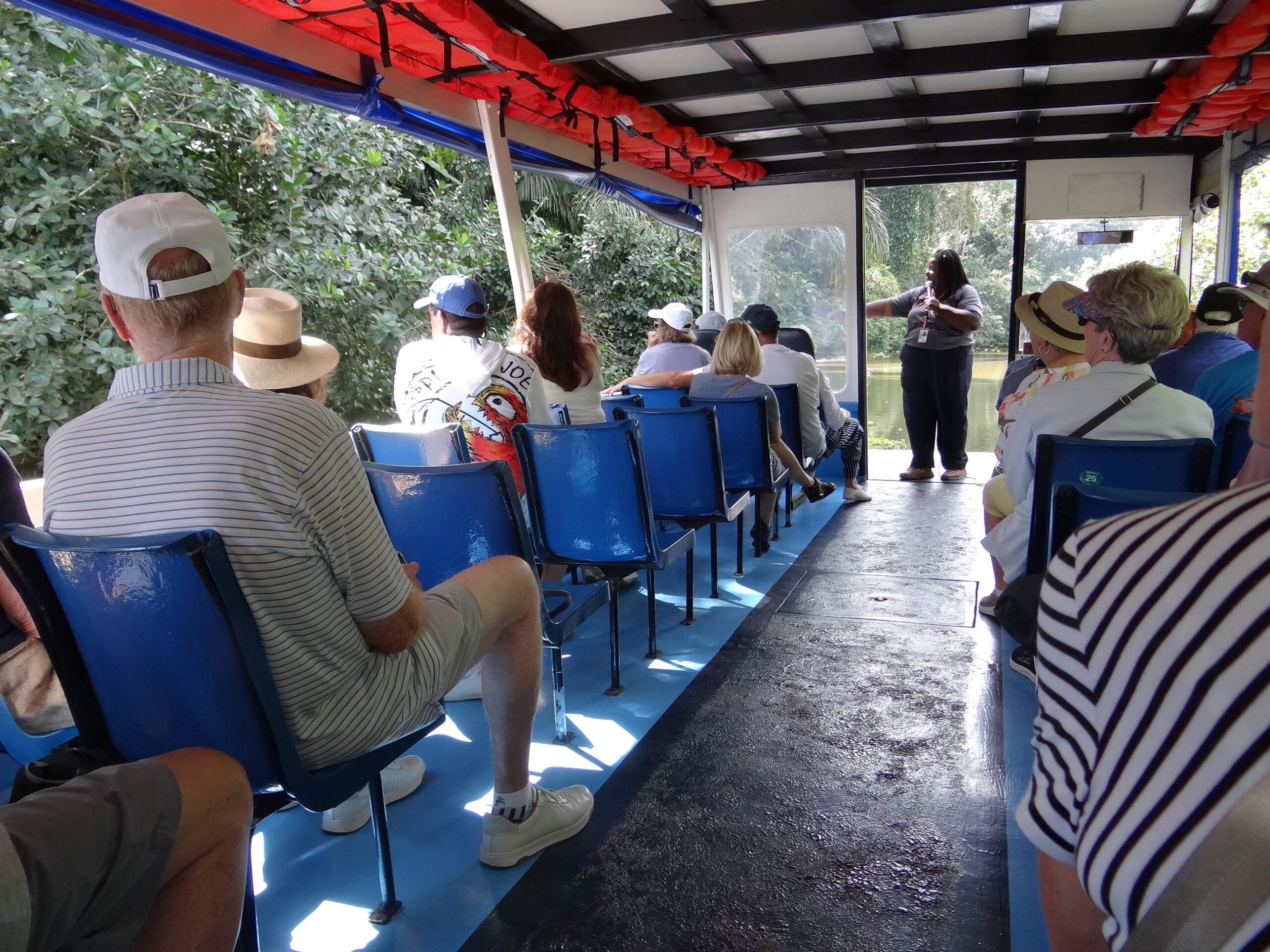 After the chocolate lecture they put us on a boat and we did a cruise through the canals in the rainforest. That’s our guide lady up front pointing something out to us, and there was plenty see.