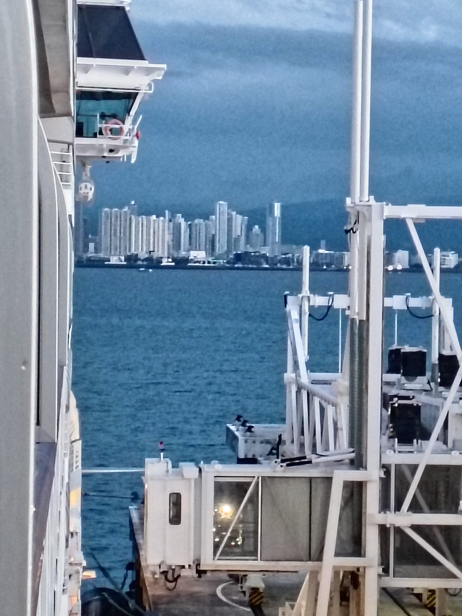 View from the pier as we got ready to leave the ship the next morning. You can see the modern part of Panama City in the background.