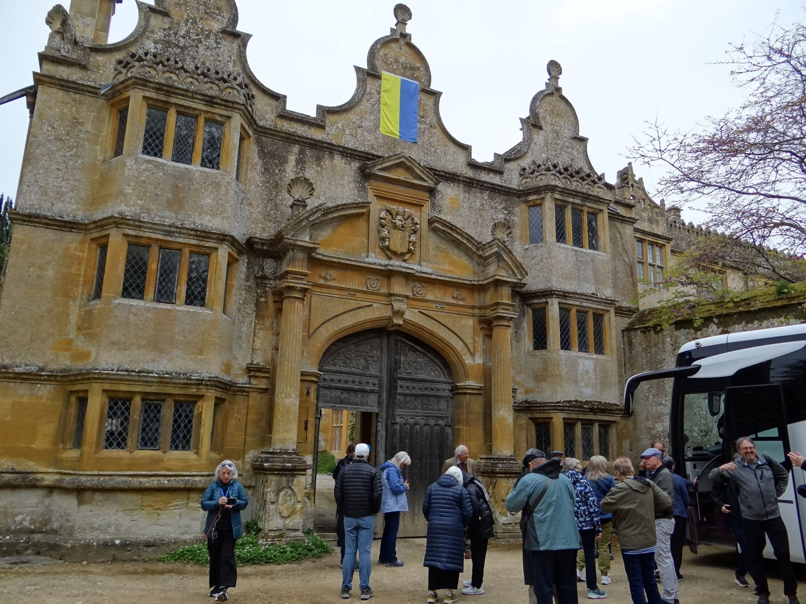 Next morning we’re at Stanway House in Gloucestershire, England, a Jacobean manor house originally built between the late 16th and early 17th centuries. The gatehouse was draped with a Ukrainian flag showing support for the nation.