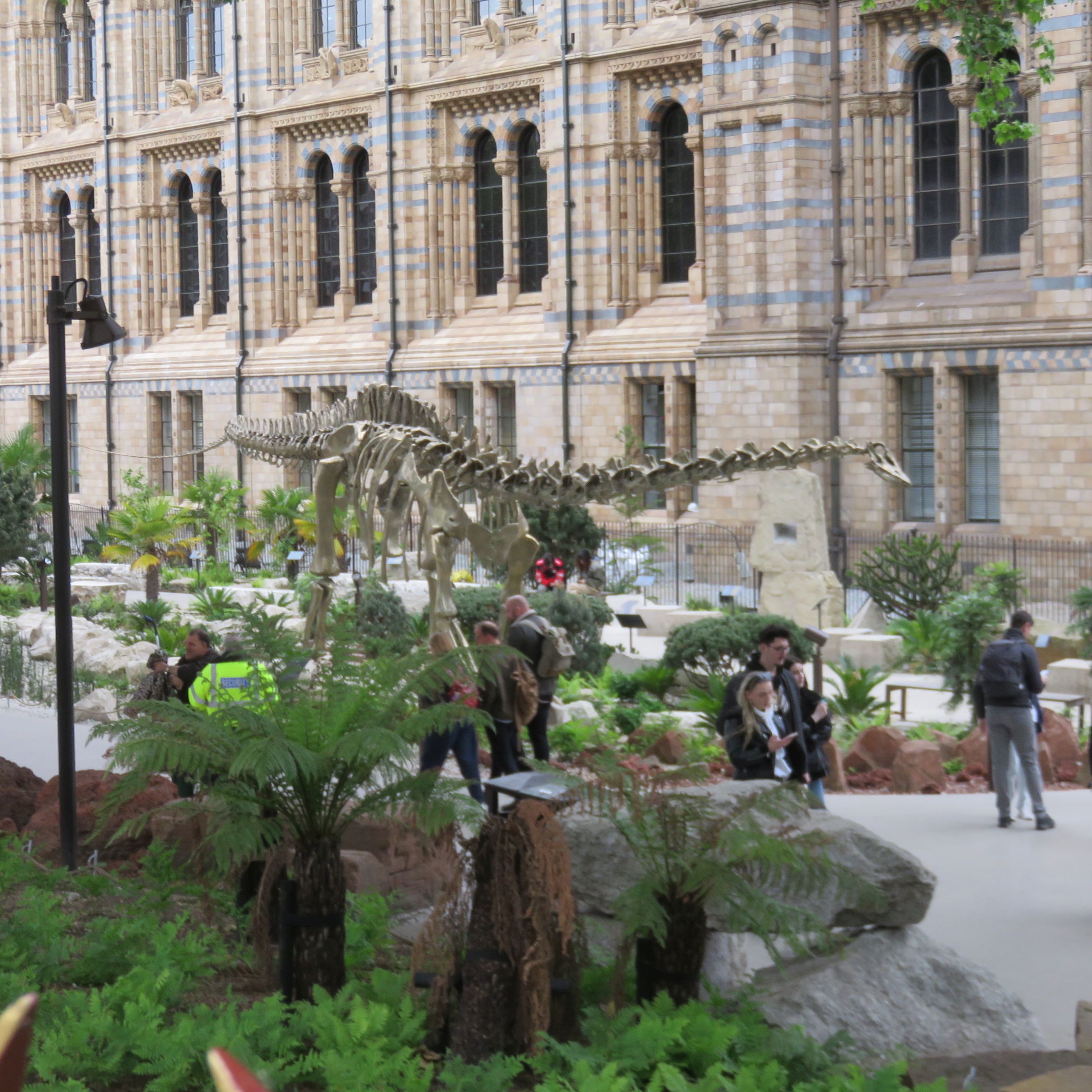 Last stop for the day was at the Natural History Museum which was just a couple of blocks from the hotel. This is approaching the entrance where they have “Fern,” a 26-meter-long bronze cast of a Diplodocus skeleton.