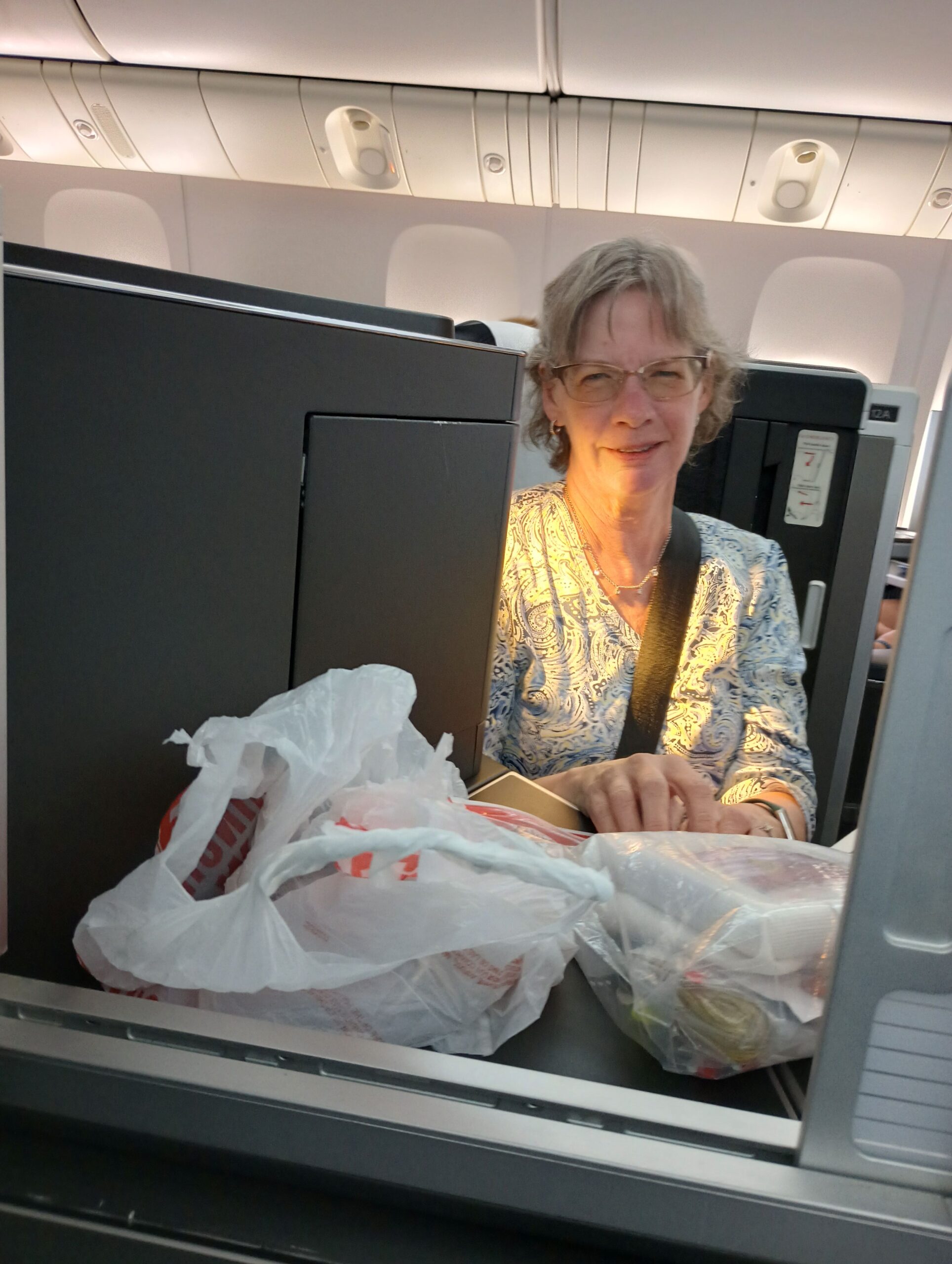 All settled into our pods and Glenda’s pulling out her cross stitching periphernalia. Next stop, Austin, followed by home. Yay.